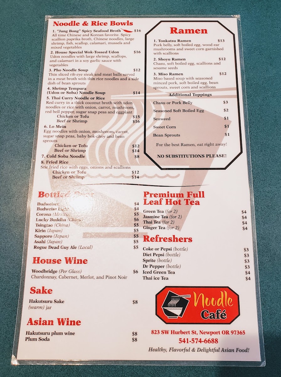Noodle Cafe Menu